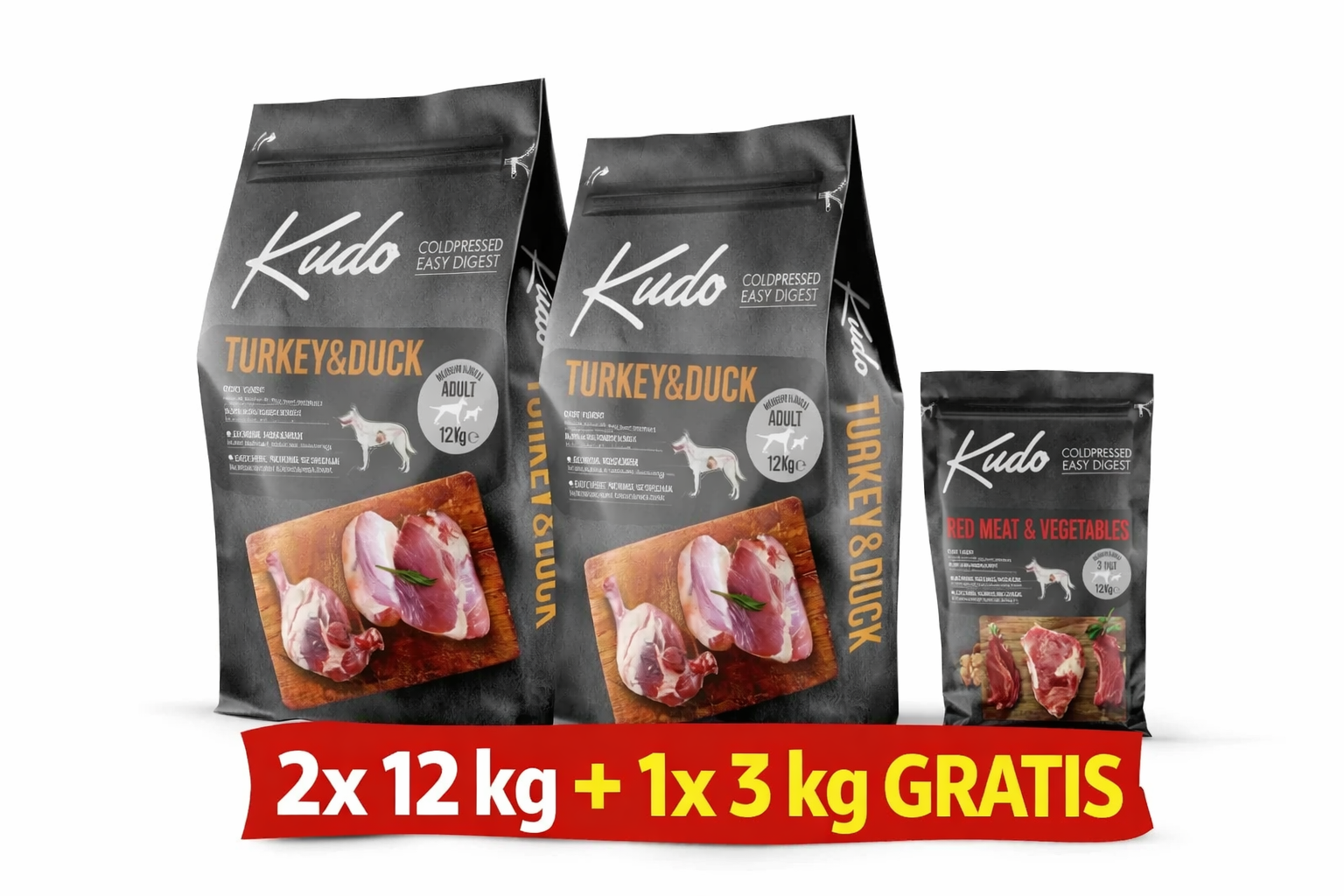 Kudo Adult Mediu-Maxi - Hrana uscata, presata la rece - Curcan si Rata - 12kg